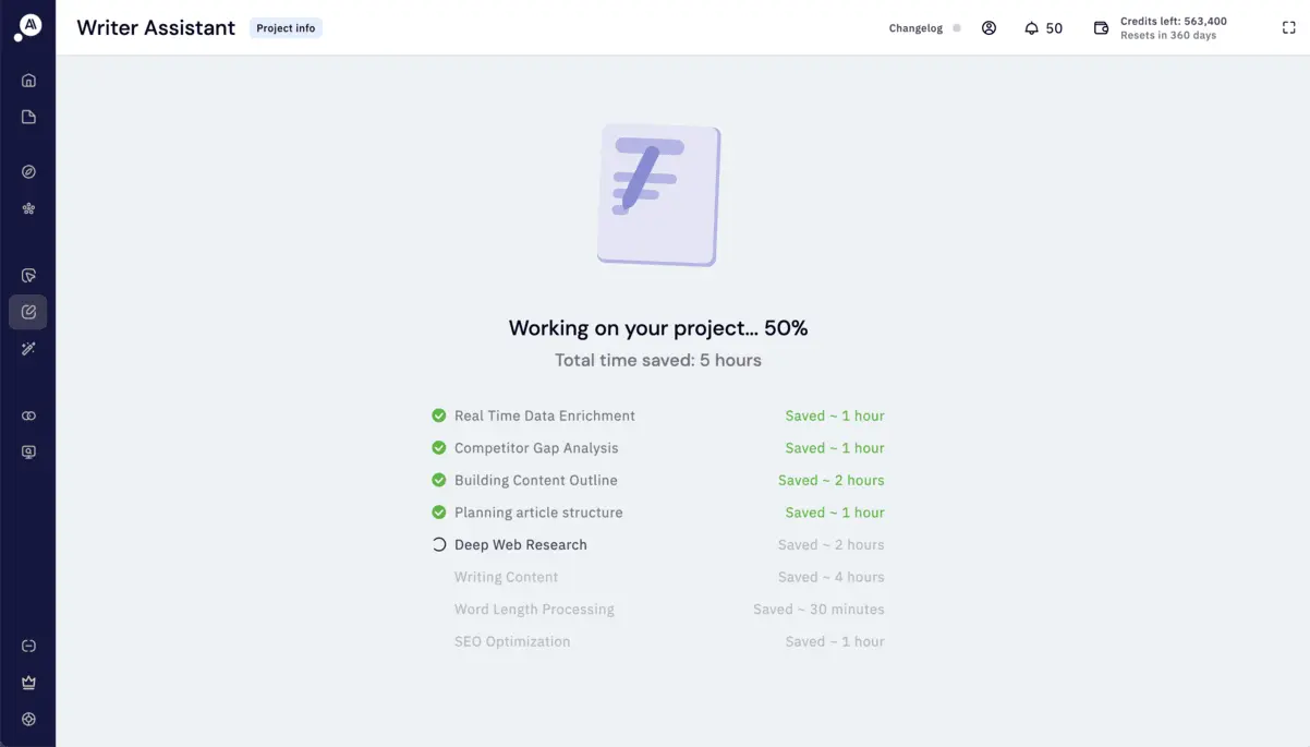 Unlike traditional tools, this Agent runs autonomously, handling research, outlining, and writing without instructions at every step. You can customize the tone and how distinct the content should be. While our standard AI Writer Assistant gives full control, the Agent offers speed and convenience for high-quality content at scale, without the extra effort.